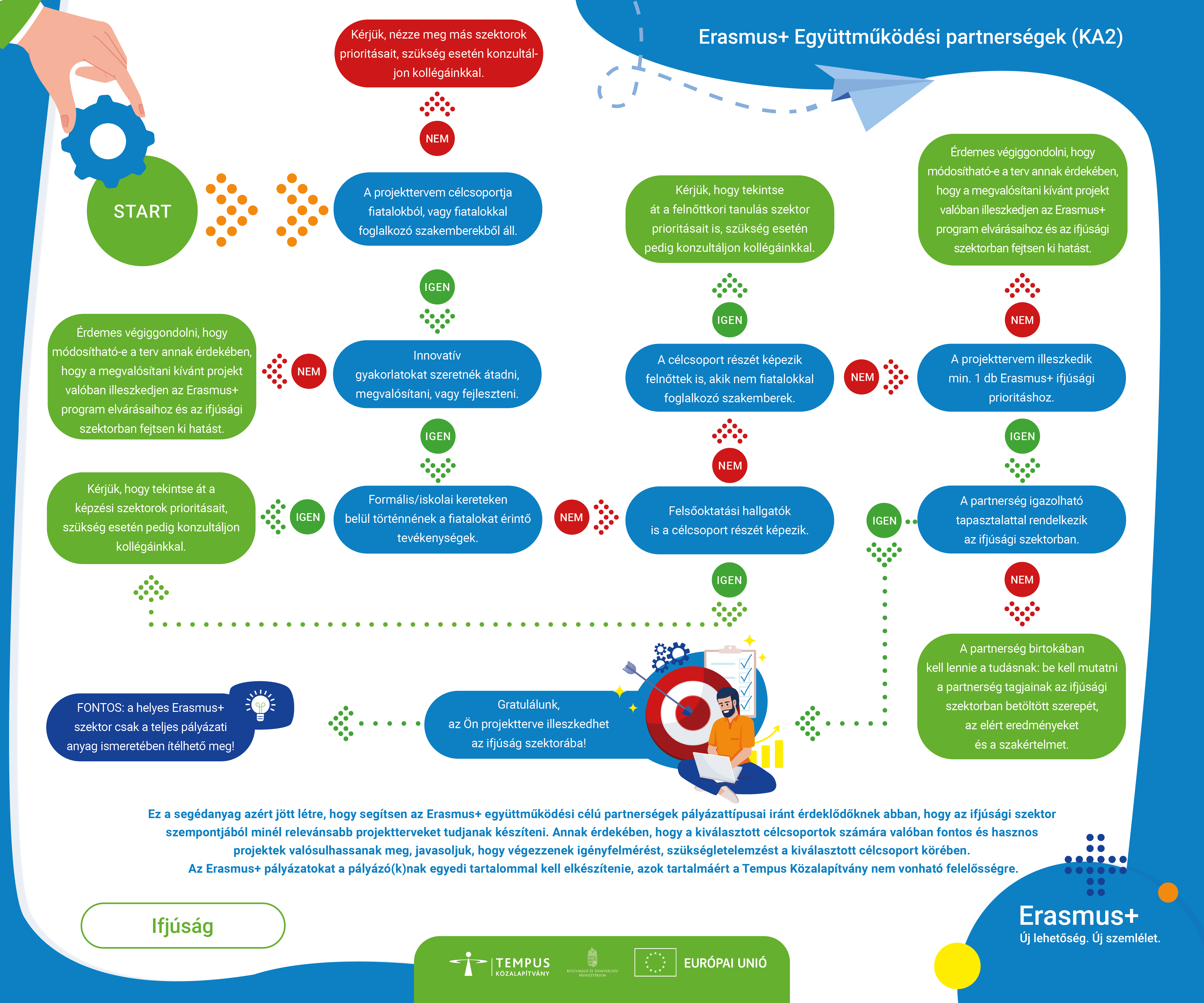 A segédlet azzal a céllal készült, hogy iránymutatást nyújtson az Erasmus+ ifjúsági partnerségi pályázatok iránt érdeklődőknek a megfelelő szektorválasztás kapcsán.
